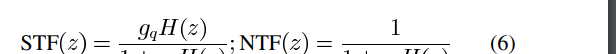 {\hbox{STF}}(z)= {g_qH(z) \over 1+g_qH(z)}; {\hbox{NTF}}(z)= {1 \over 1+g_qH(z)} \eqno{\hbox{(6)}}