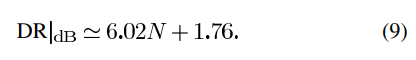 이상적인 N비트 나이퀴스트율 ADC의 동적 범위(DR) 식은 B=N, L=0 및 OSR=1을 위의 식에 대입함으로써 얻을 수 있으며, 다음과 같은 결과를 제공합니다 [26]: