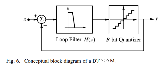 Fig. 8 shows the basic block diagram of a ΣΔ ADC, where Fig. 8(a) corresponds to a DT implementation (DT-ΣΔ ADC) and Fig. 8(b) is a continuous-time (CT) implementation (CT-ΣΔ ADC). In both cases, LP signals are assumed to be processed. Otherwise, the filters involved must be changed from LP to BP transfer functions.