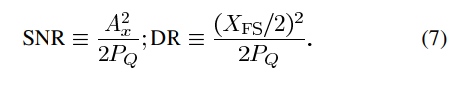 여기서 PQP_Q는 밴드 내 양자화 잡음 전력을 나타내며, XFSX_{\text{FS}}는 전체 스케일(full scale) 출력을 의미합니다.