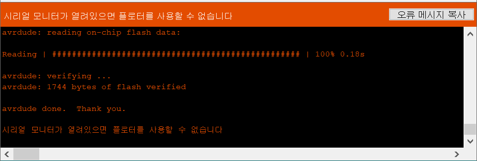 시리얼 모니터가 열려 있으면 시리얼 플로터를 사용할 수 없다.