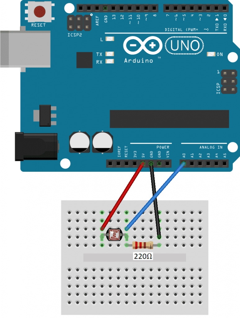 밝기 변화를 직관적으로 확인하기 위해 저항대신 LED를 연결하였다. 사실 가지고 있는 저항이 너무 커서 빛을 줘도 값 변화가 작길래..