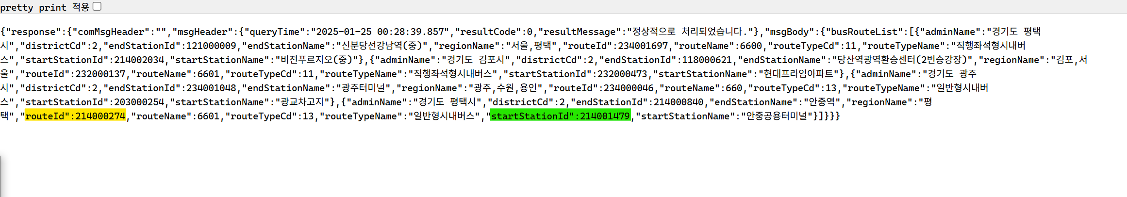 우선 3에 있는 정보를 눌러보자. 다행히 여기는 우리가 아는 번호를 입력하면 된다. 적당히 값이 작게 나오는 660번 버스를 찾아보자.