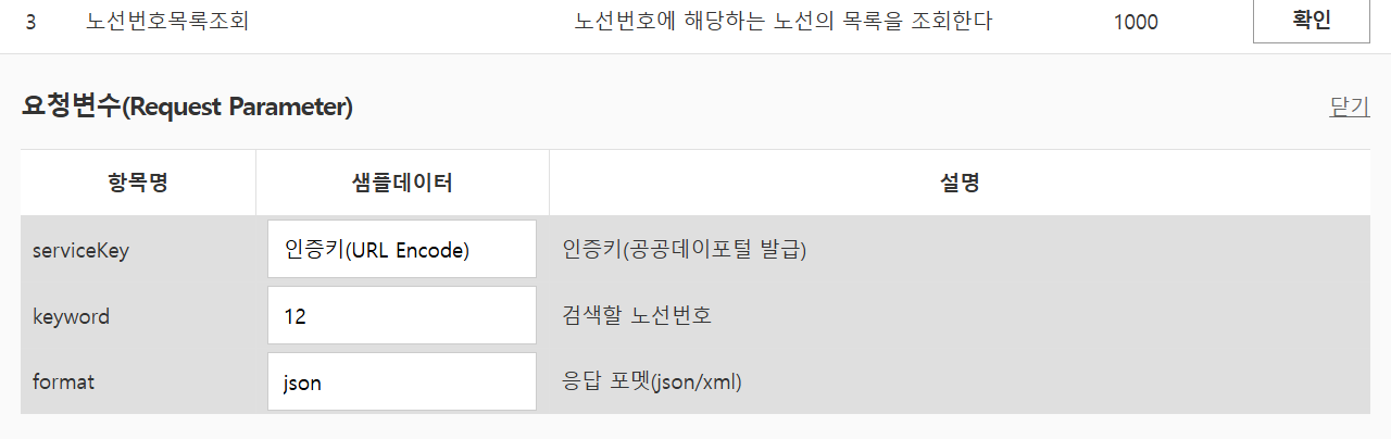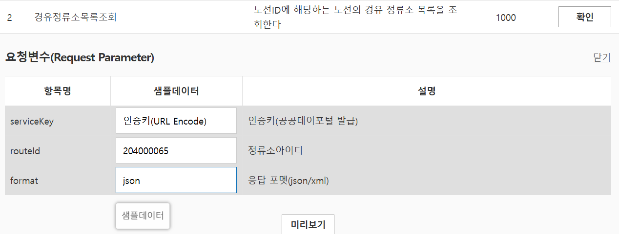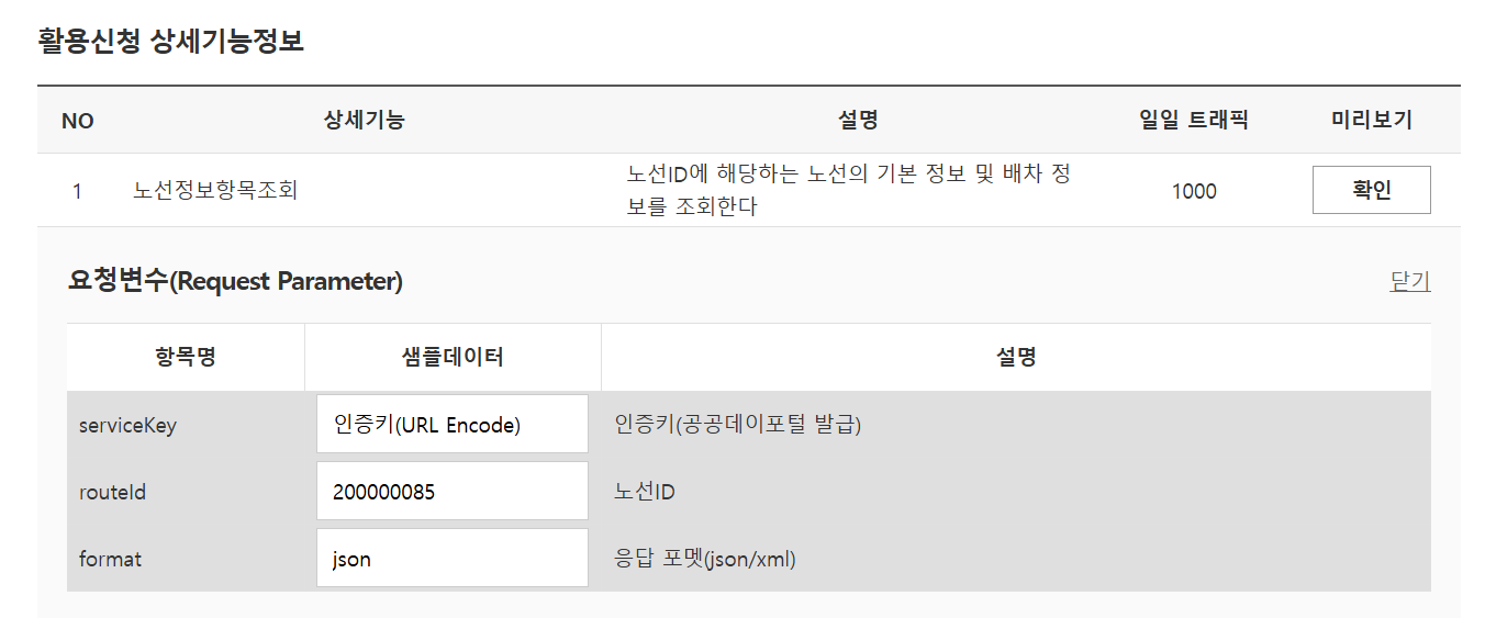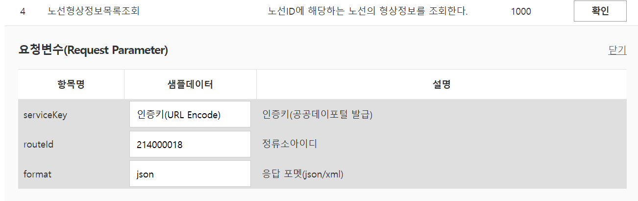 아래 다른 버스 정보 관련공공데이터가 나오지만 그냥 4개 있는 정보를 사용하자